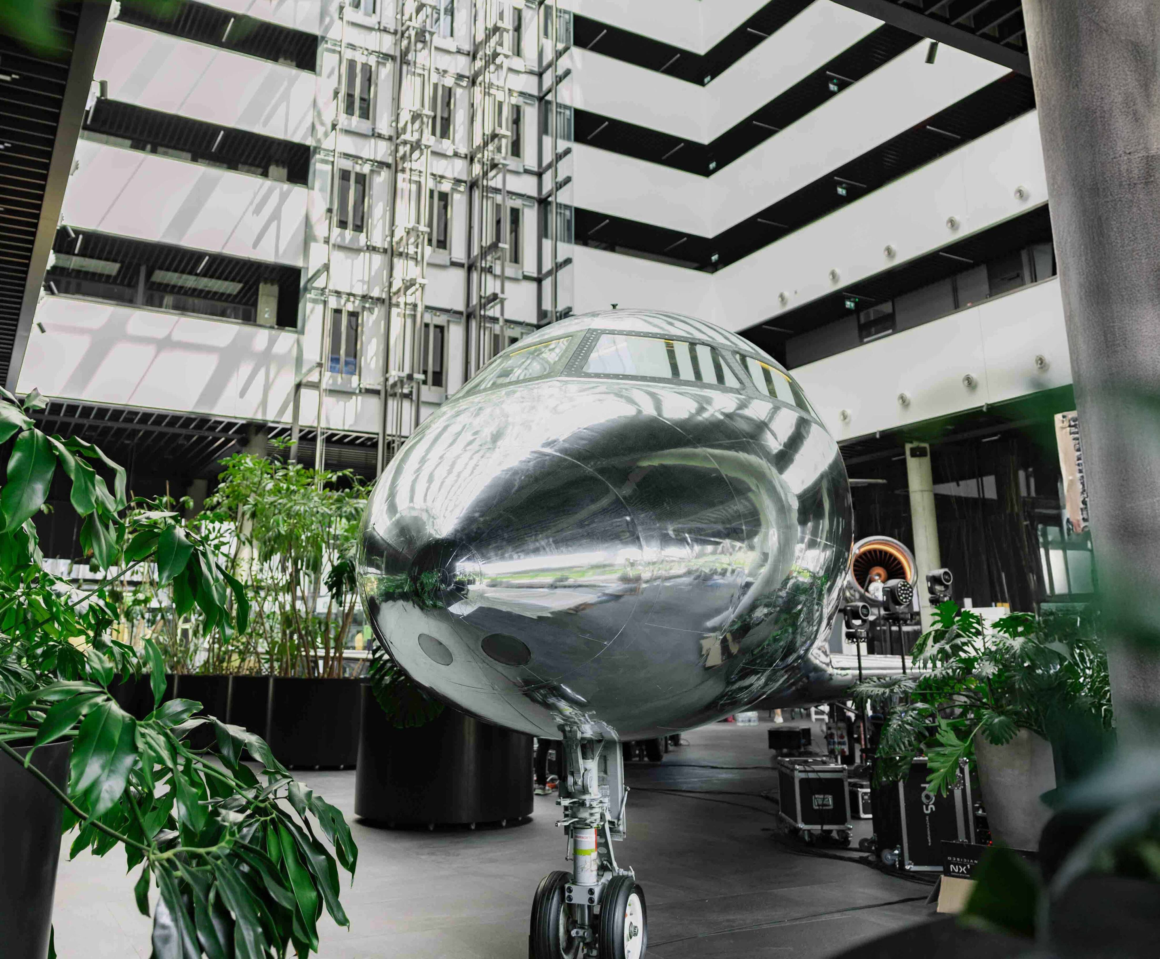 Is the plane real? How did they manage to bring the entire plane inside the building?